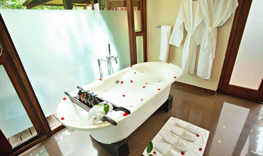Nine stilted treehouse suites, crafted from local timber and makuti palm fronds, weave a sophisticated blend of intimacy and romance, offering privacy and exclusivity in the cool, leafy surroundings, with elephant visitors passing through.